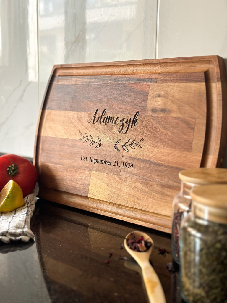 Engraved wood pieces feel high-end and useful, making them great for people who like to cook or host parties.
